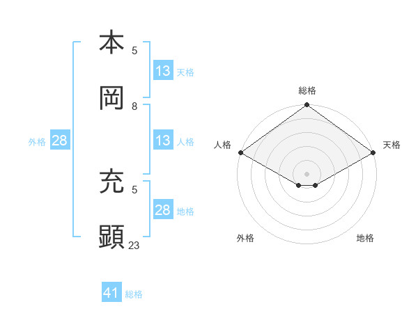 本岡 充顕さんの天格は13画の5点!
