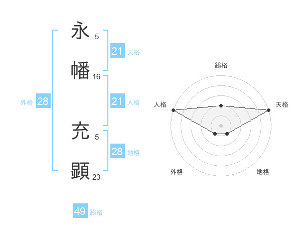 永幡 充顕さんの天格は21画の5点!