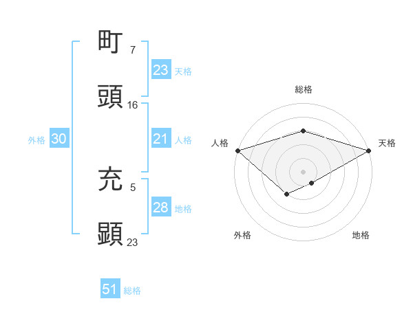 町頭 充顕さんの総格は51画の3点!
