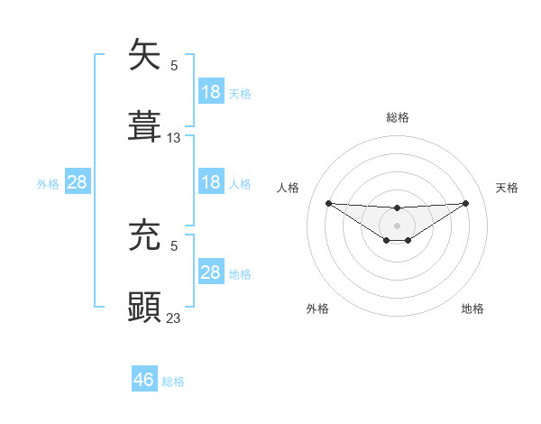矢葺 充顕さんの天格は18画の4点!