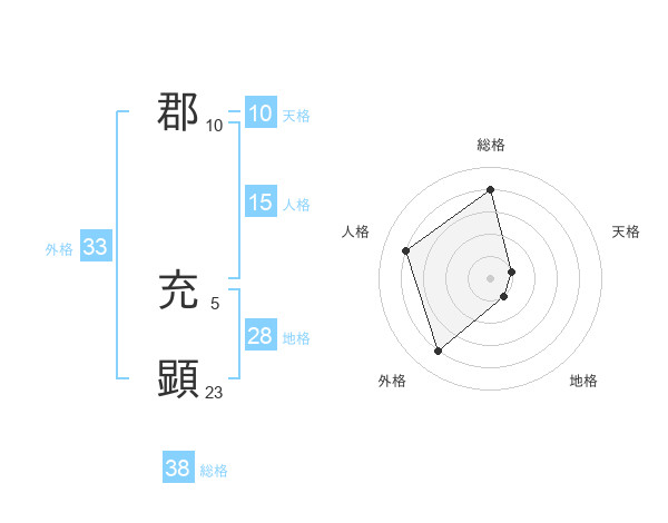 郡 充顕さんの総格は38画の4点!