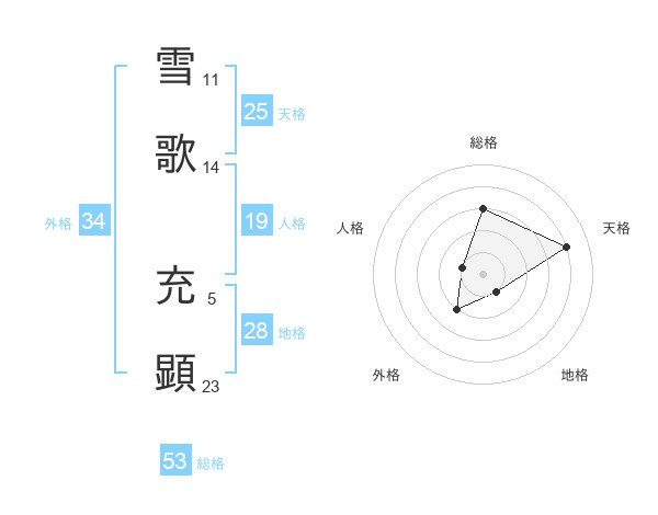 雪歌 充顕さんの総格は53画の3点!