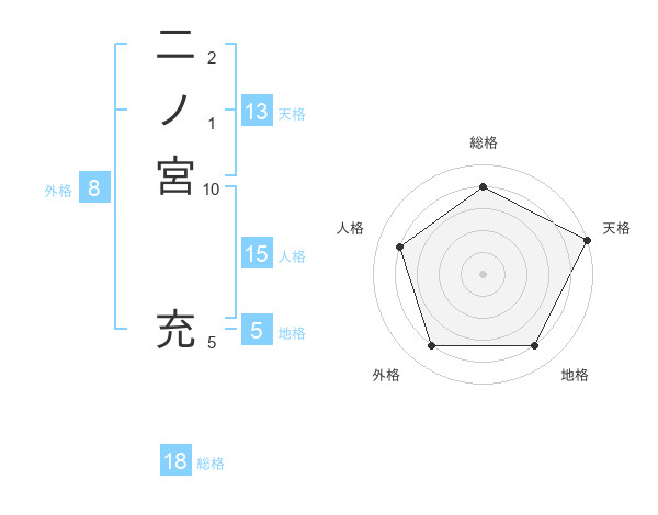 二ノ宮 充さんを姓名の画数から五運を鑑定