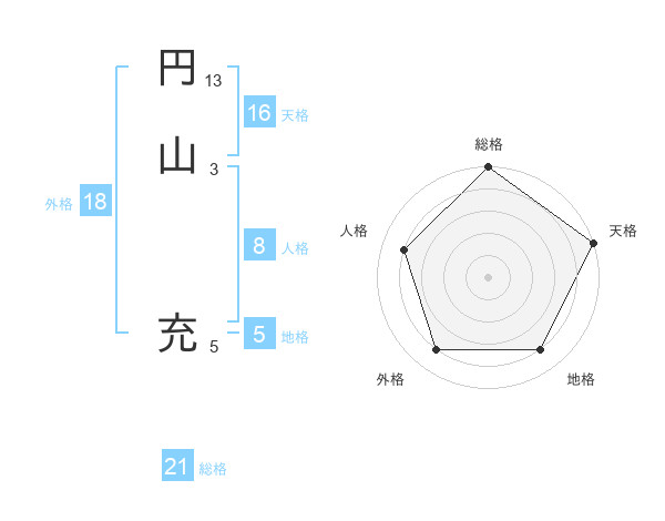 円山 充さんの総格は21画の5点!