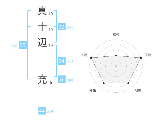 真十辺 充さんの天格は39画の5点!