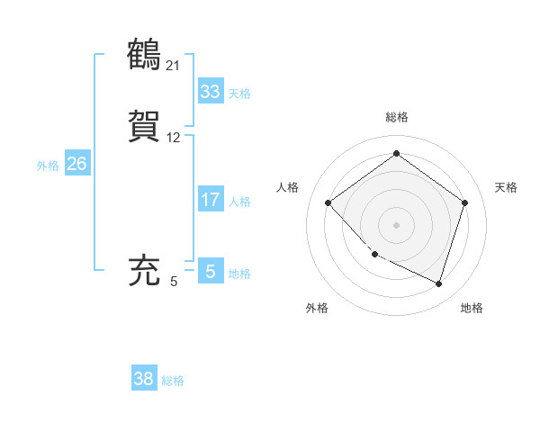 鶴賀 充さんの総格は38画の4点!