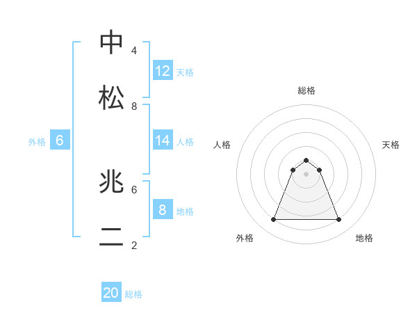 中松 兆二さんの総格は20画の1点!