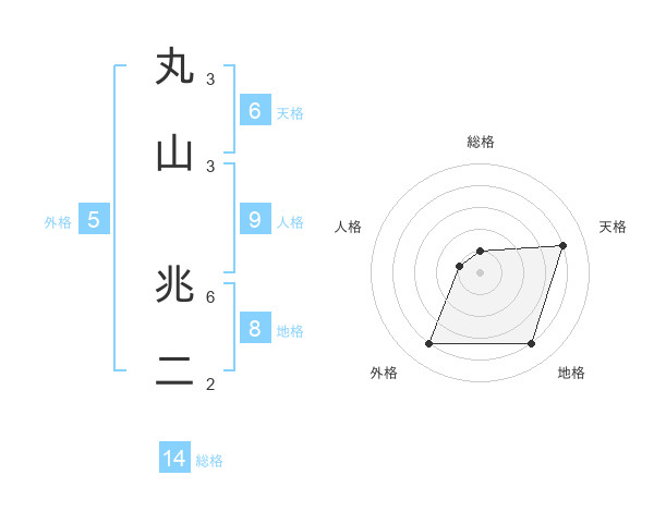 丸山 兆二さんの総格は14画の1点!
