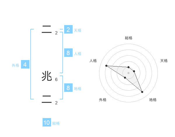 二 兆二さんの地格は8画の4点!