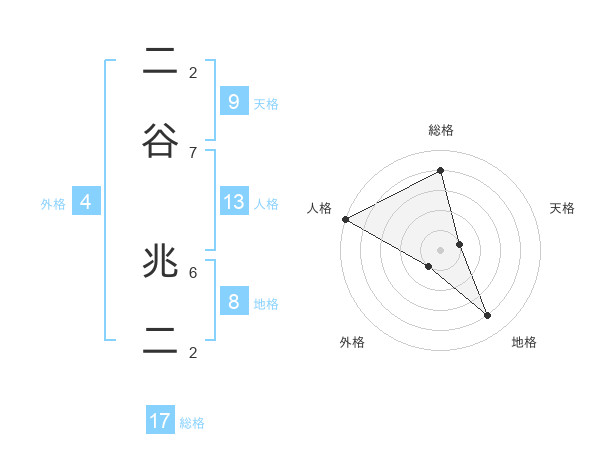 二谷 兆二さんの総格は17画の4点!