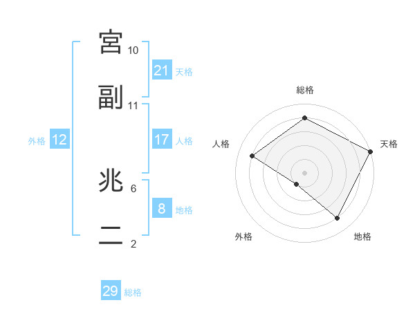 宮副 兆二さんの総格は29画の4点!