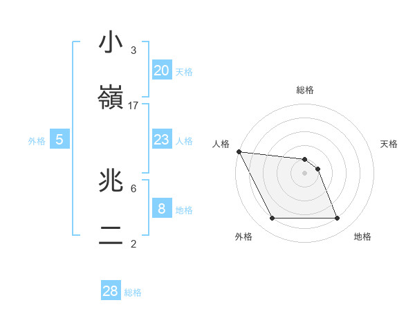 小嶺 兆二さんを姓名の画数から五運を鑑定