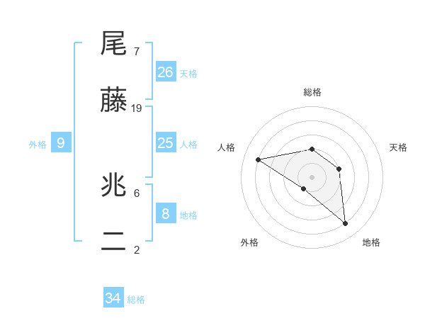 尾藤 兆二さんを姓名の画数から五運を鑑定