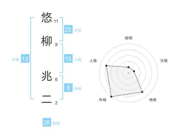 悠柳 兆二さんの天格は20画の1点!