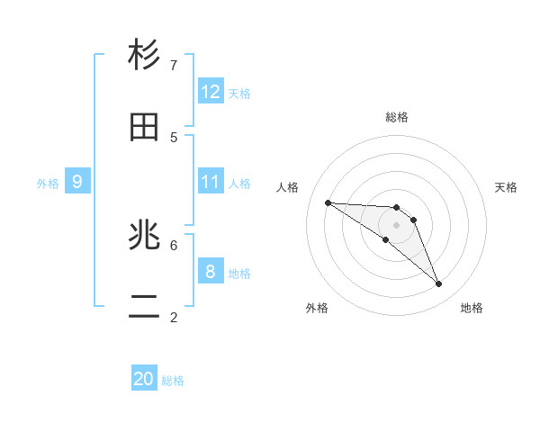杉田 兆二さんの総格は20画の1点!
