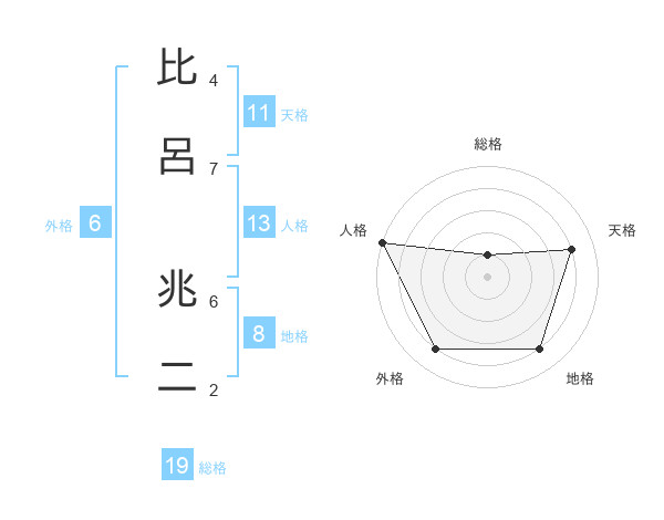 比呂 兆二さんを姓名の画数から五運を鑑定