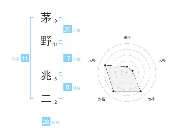 茅野 兆二さんの人格は17画の4点!