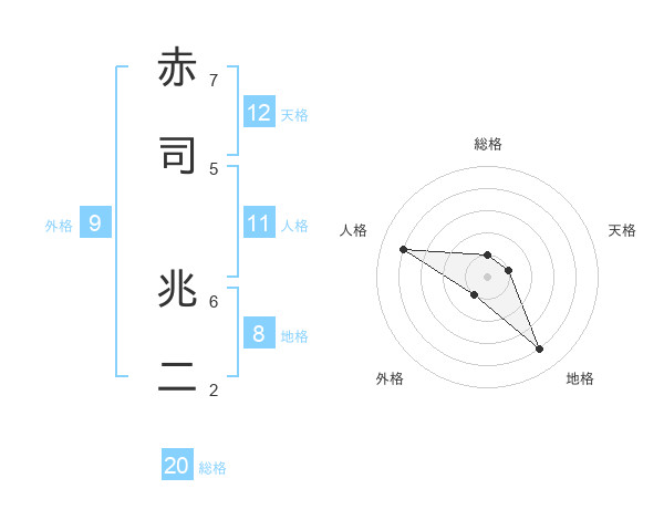 赤司 兆二さんを姓名の画数から五運を鑑定