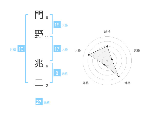 門野 兆二さんの総格は27画の3点!