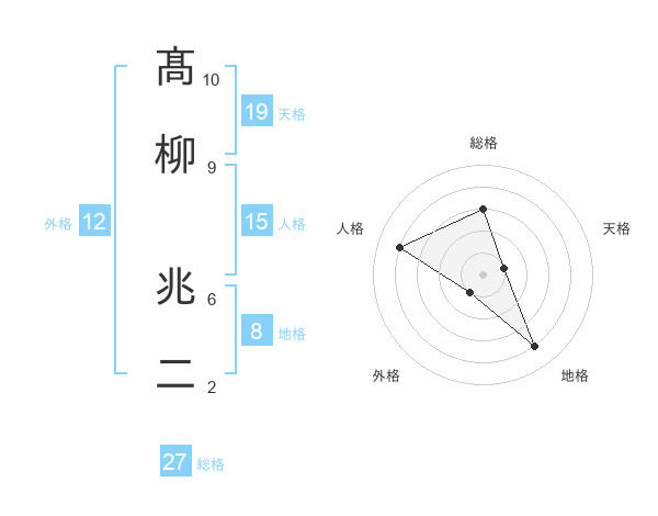髙柳 兆二さんの総格は27画の3点!