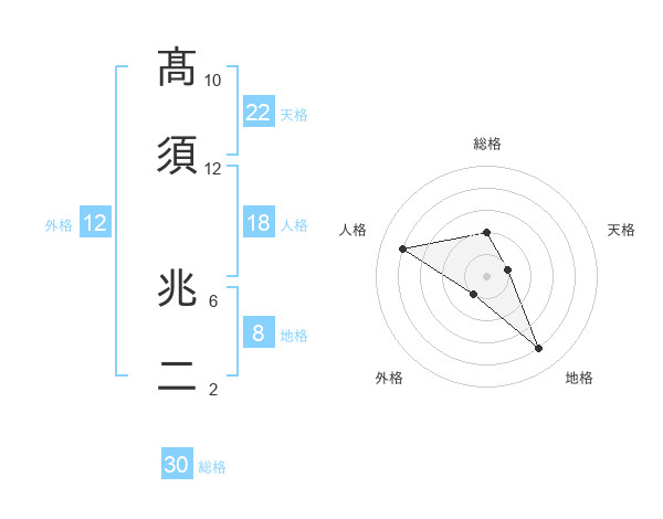 髙須 兆二さんを姓名の画数から五運を鑑定
