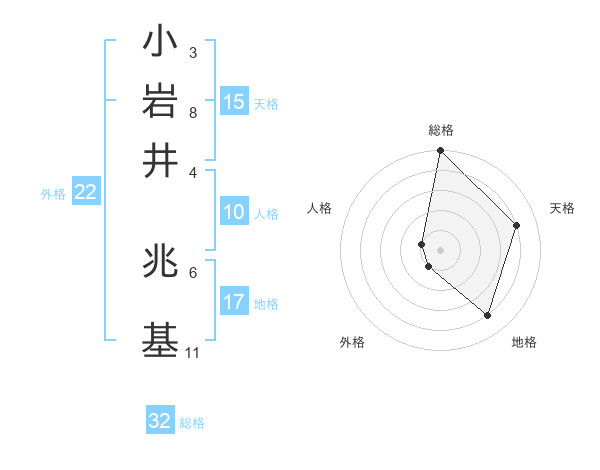小岩井 兆基さんを姓名の画数から五運を鑑定