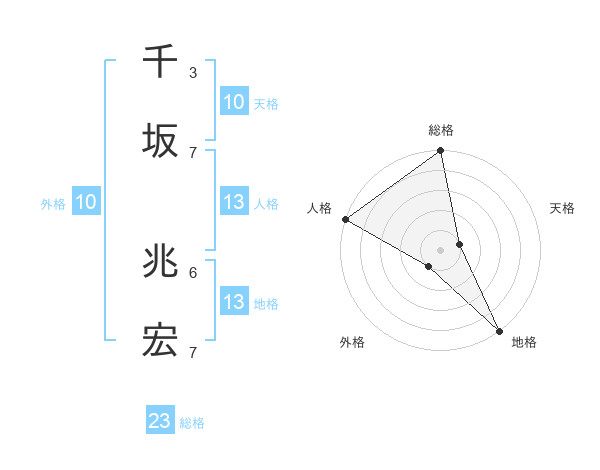千坂 兆宏さんの総格は23画の5点!