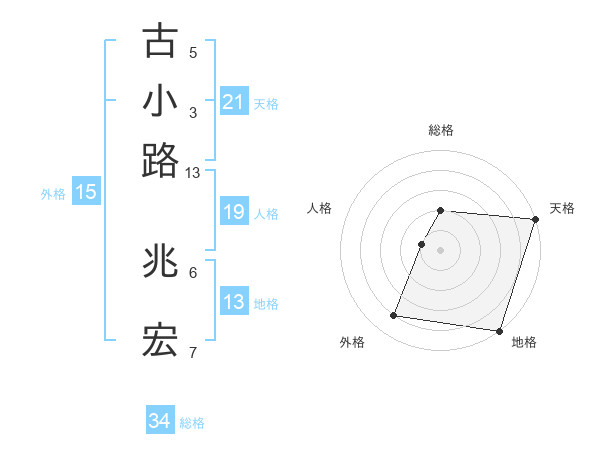 古小路 兆宏さんの天格は21画の5点!