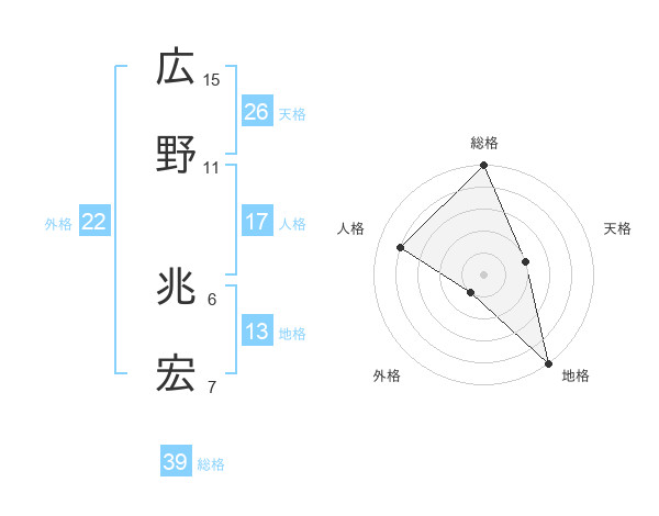 広野 兆宏さんを姓名の画数から五運を鑑定