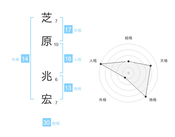 芝原 兆宏さんの天格は17画の4点!