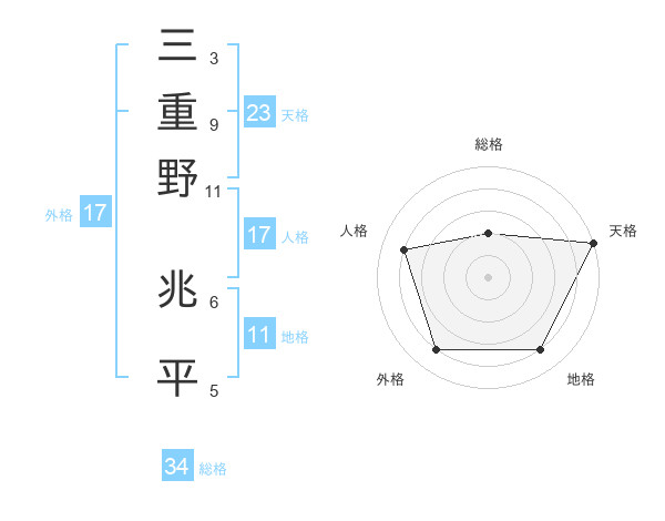 三重野 兆平さんを姓名の画数から五運を鑑定