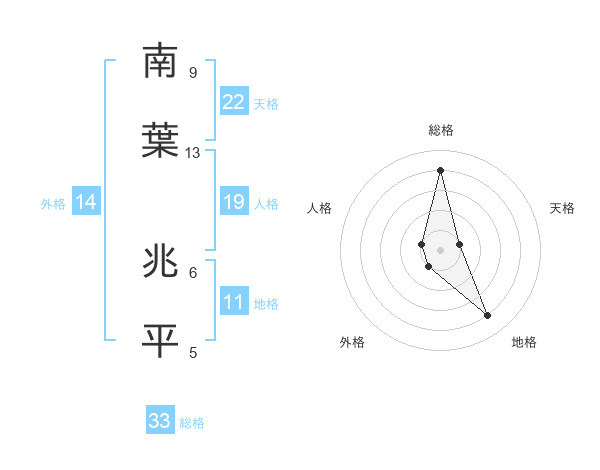 南葉 兆平さんを姓名の画数から五運を鑑定
