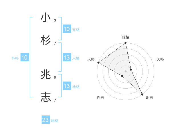 小杉 兆志さんを姓名の画数から五運を鑑定