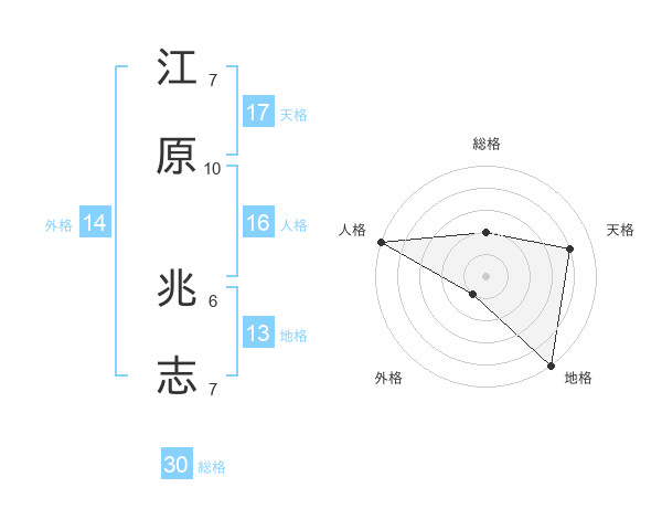 江原 兆志さんの天格は17画の4点!