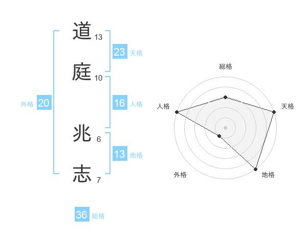 道庭 兆志さんの天格は23画の5点!