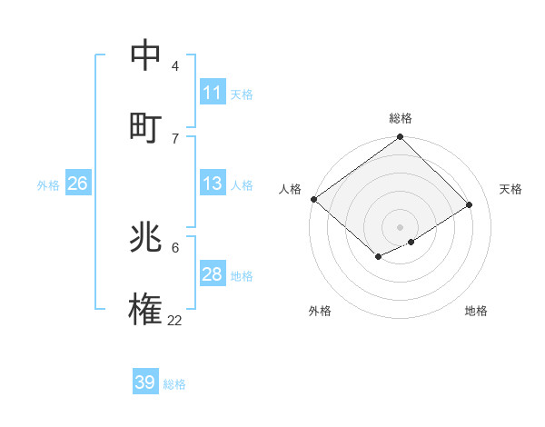 中町 兆権さんの総格は39画の5点!