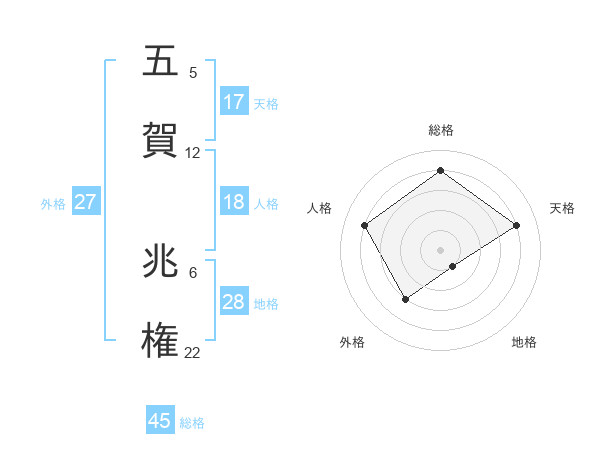 五賀 兆権さんを姓名の画数から五運を鑑定