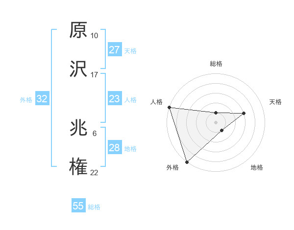 原沢 兆権さんを姓名の画数から五運を鑑定