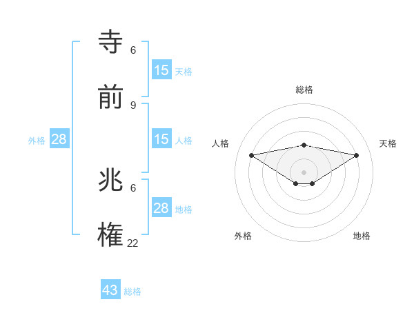 寺前 兆権さんの天格は15画の4点!