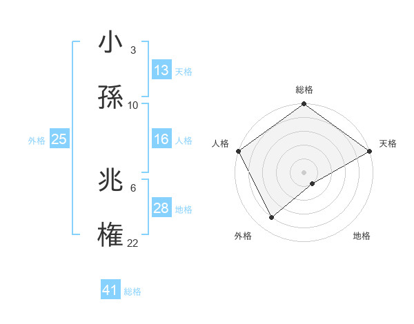 小孫 兆権さんを姓名の画数から五運を鑑定
