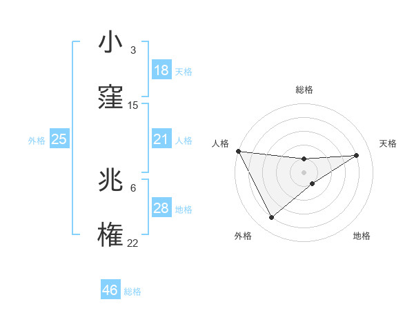 小窪 兆権さんの人格は21画の5点!