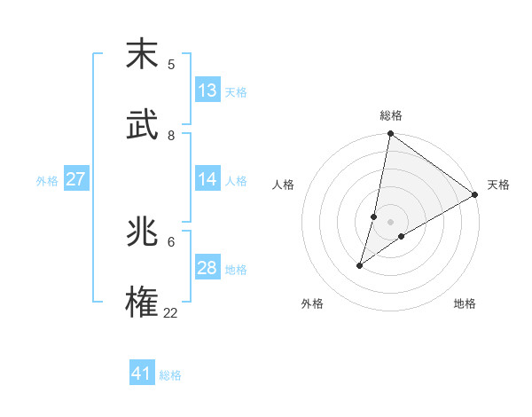 末武 兆権さんの総格は41画の5点!