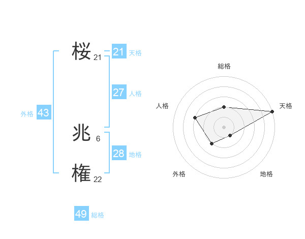 桜 兆権さんの天格は21画の5点!