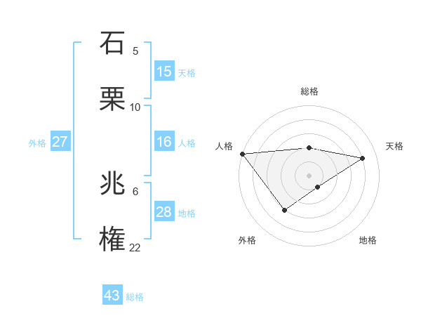 石栗 兆権さんを姓名の画数から五運を鑑定