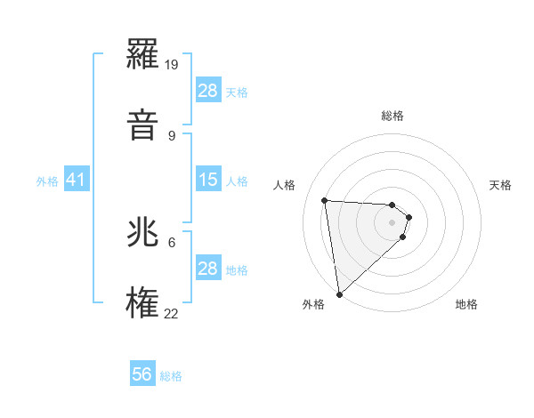 羅音 兆権さんの総格は56画の1点!