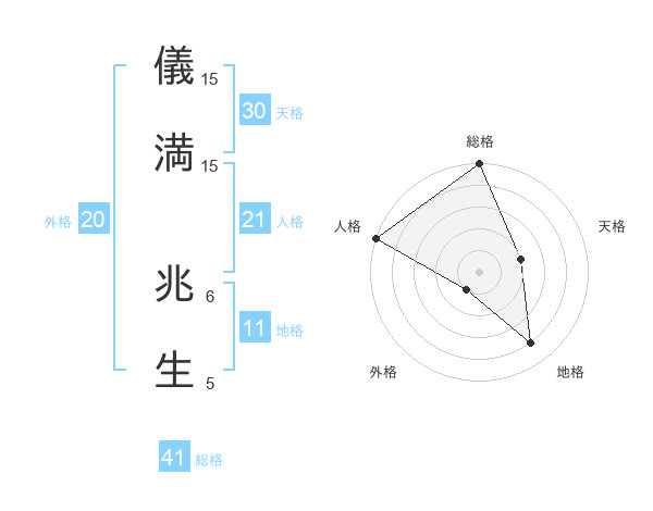 儀満 兆生さんの総格は41画の5点!