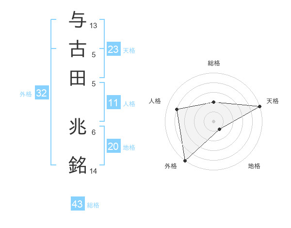 与古田 兆銘さんの天格は23画の5点!