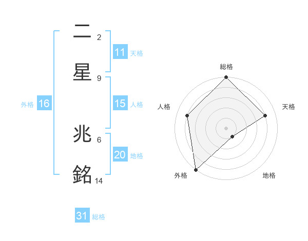 二星 兆銘さんの総格は31画の5点!