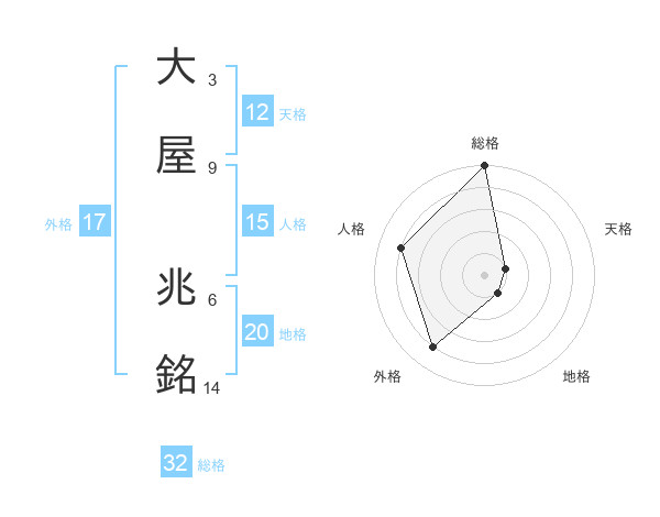 大屋 兆銘さんの総格は32画の5点!