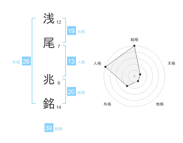 浅尾 兆銘さんの天格は19画の1点!